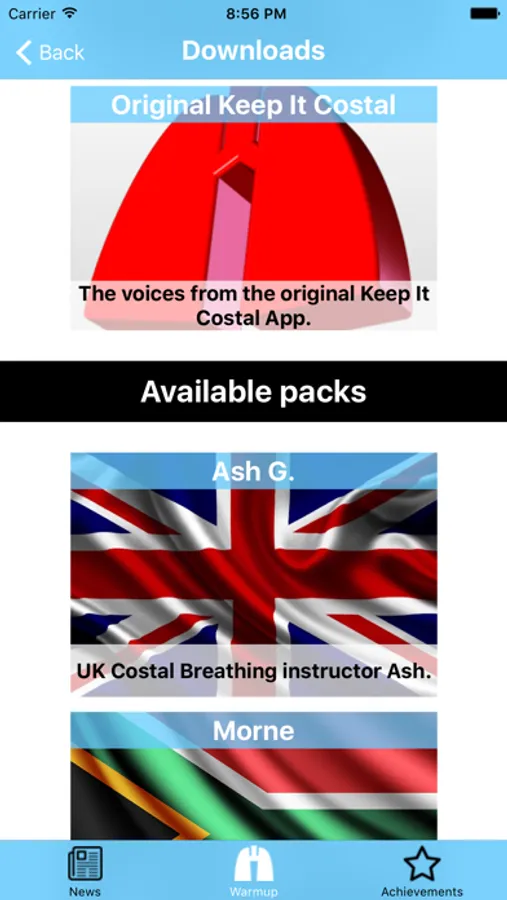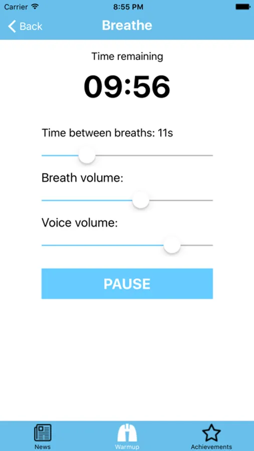 This application provides an audio guideline where users can pause and breathe along with the selected profile over a set time to warm up their costal diaphragms.
