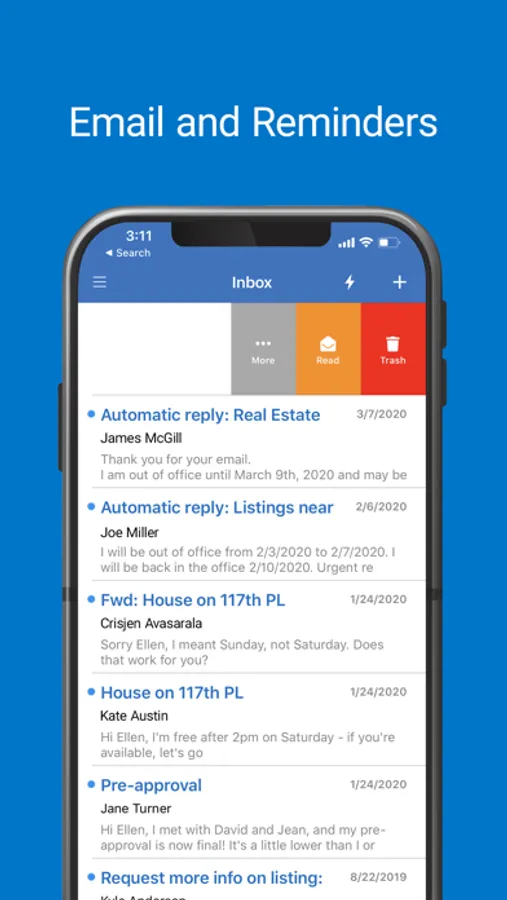 Easily view, reply to, forward, delete, archive, filter and create emails in the app. Plus, creating a new contact from an email is a cinch.