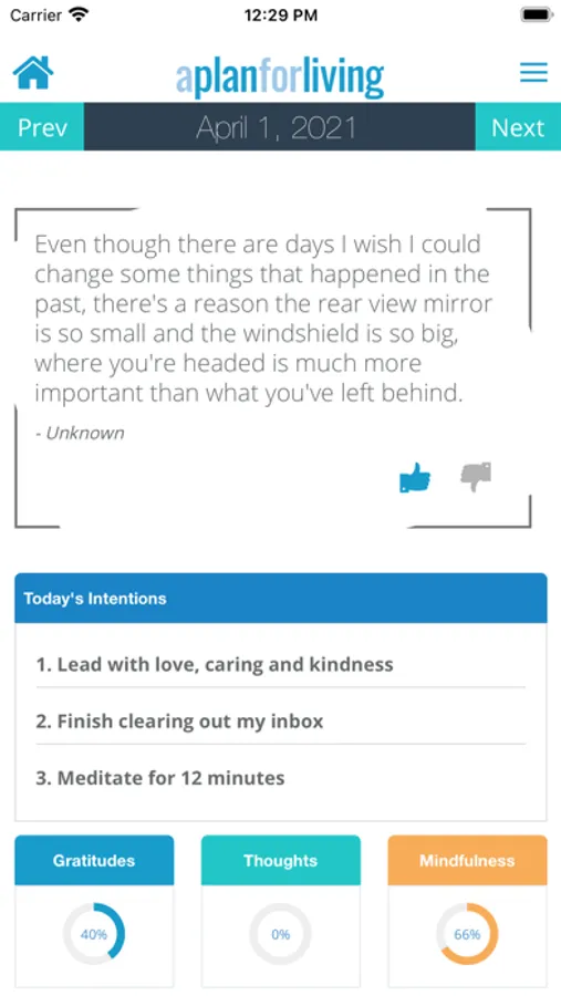 The happiness app that combines gratitude, mindfulness, and spirituality to help change your outlook on life. Designed to help improve your daily performance through the implementation of The Happiness Formula (Gratitude + Spirituality + Mindfulness = Awareness = Happiness). A Plan for Living will re-wire the minds of biggest skeptics in under 5 minutes a day.