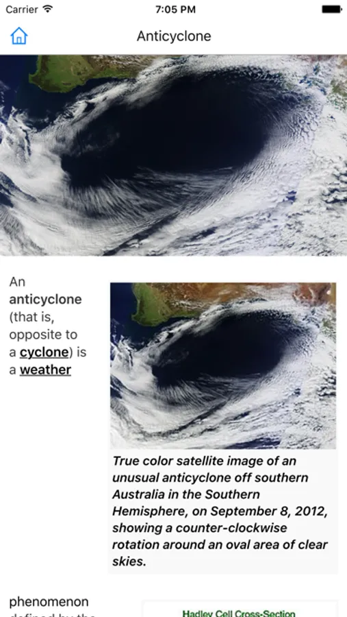 Explore the weather of the world in thousands of hours of articles and pictures covering everything from acid rain to wind shear. Our Encyclopedia of Weather contains beautiful HD photos, great organization and user interface and the most comprehensive information about weather you may want to know.