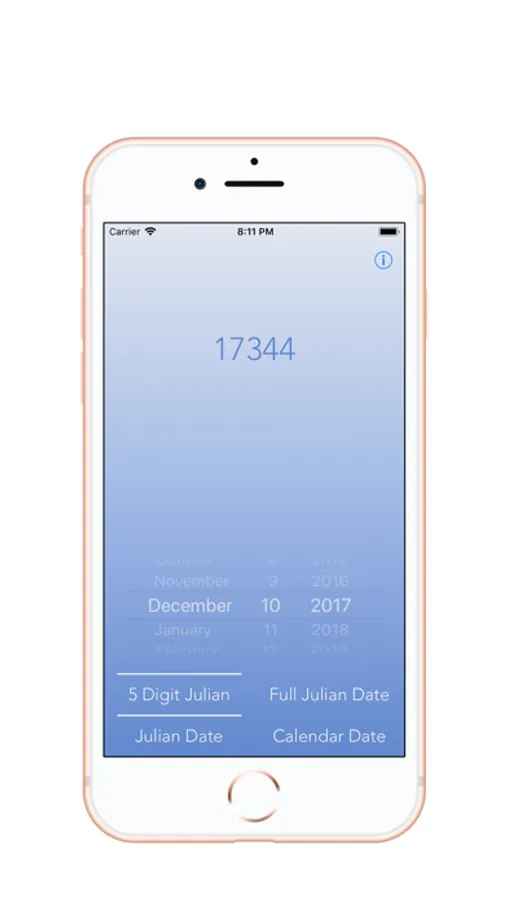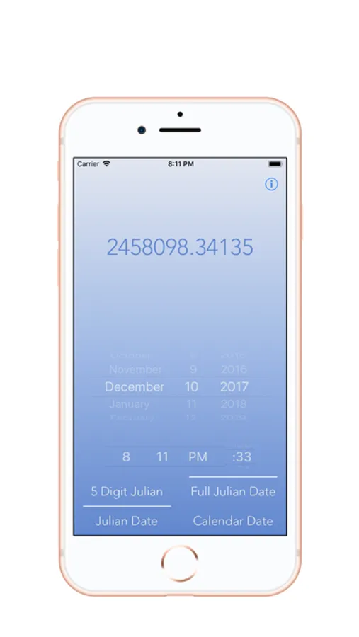 In 5 Digit mode select a Date and receive back the 5 Digit Julian Date, i.e. June 29th, 2017, would be 17180. (17) being the year 2017 and (180) being the 180th day in 2017. Purchase the Full Julian Date mode and June 29th, 2017 12:17:54 PM would be 2457934.01243. You also are able to get the Calendar Date from the Julian Date.