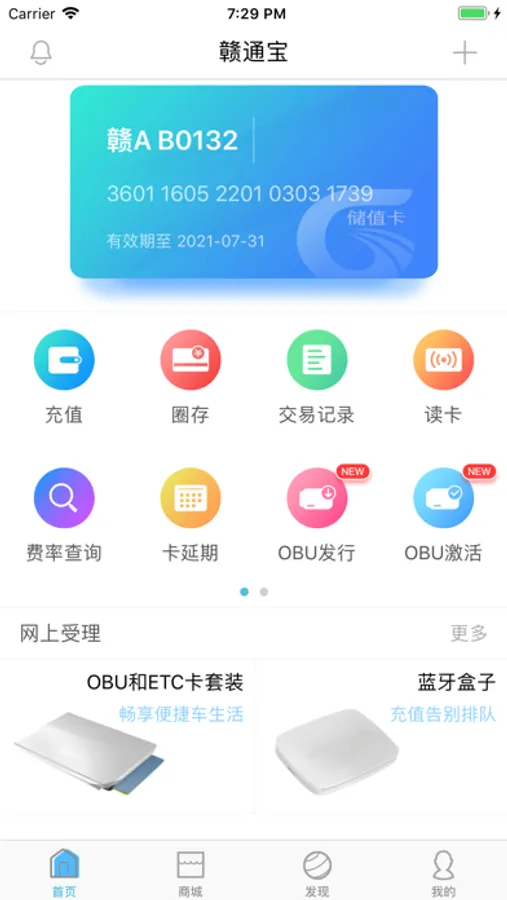 5.卡延期:支持即将或过期的赣通卡通过蓝牙OBU读卡延期。