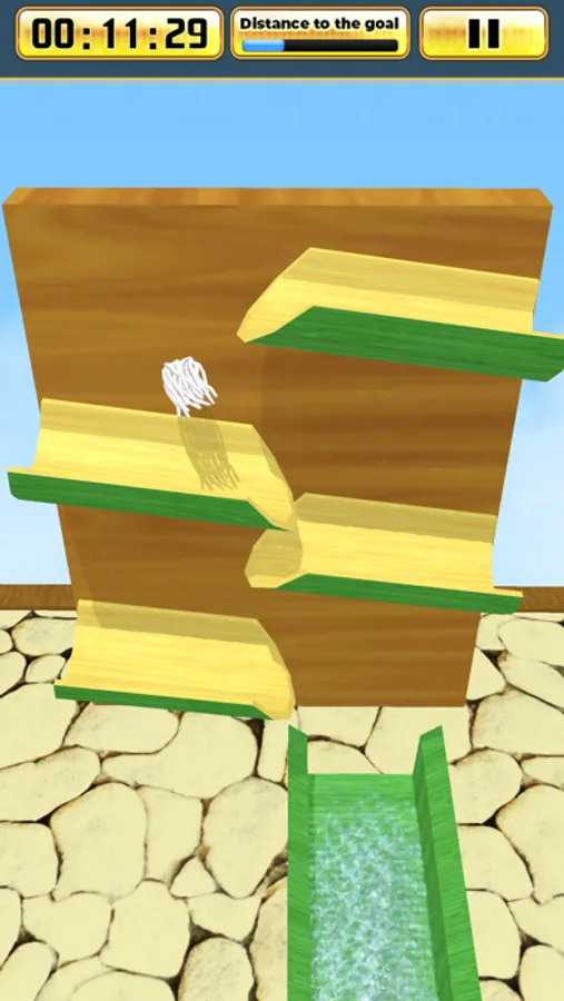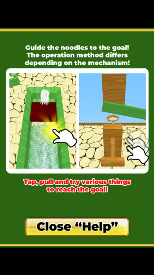 Manipulate the obstacles and guide the flowing somen to the goal in the shortest time possible.