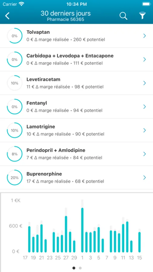 Des informations adaptées pour répondre à vos besoins commerciaux. Vous connaissez probablement votre taux de substitution global en termes de ventes. Avec Myris®, vous pouvez aussi suivre votre Substitution en Euros - en temps réel. Après tout, ce sont des euros que vous encaissez. L'application Myris® vous emmène au-delà de ce Taux de Substitution Global, il fournit également des détails au niveau de la molécule individuellement. Ainsi, vous pouvez concentrer vos efforts sur les molécules qui comptent le plus pour votre pharmacie.