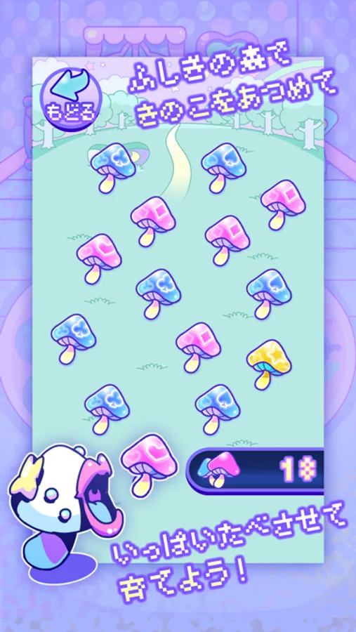 2.「きのこ」にキノコを食べさせて、ぐんぐん育てよう。