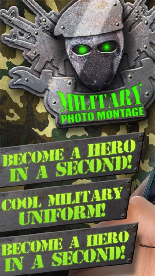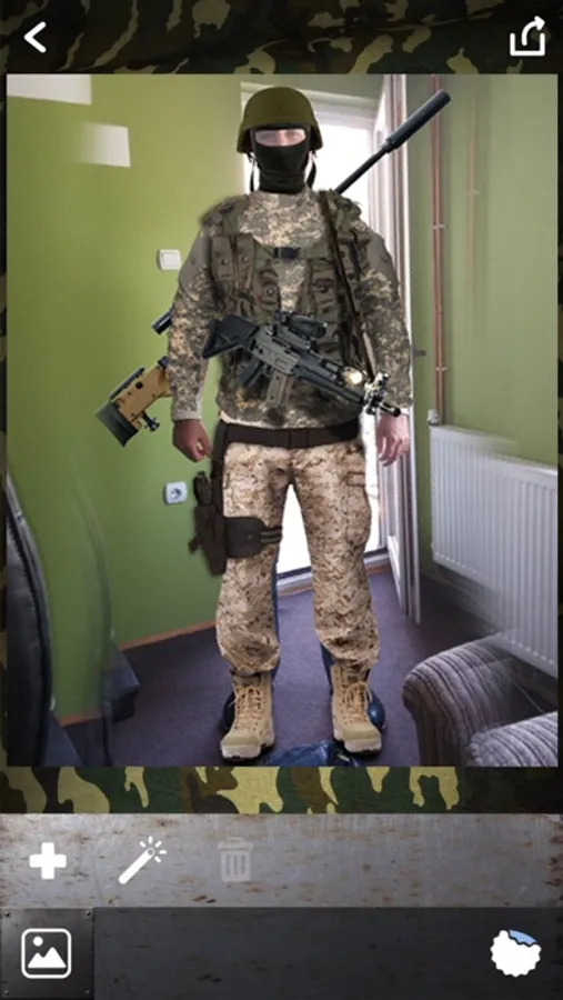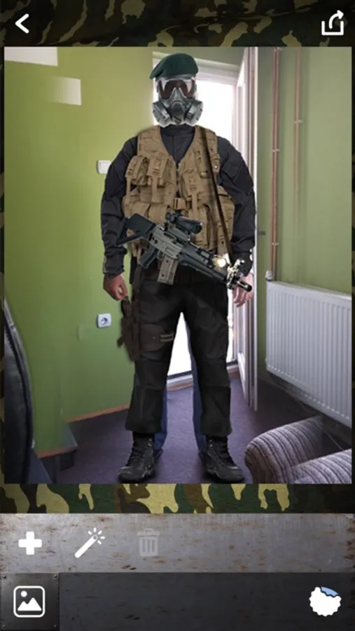 Are you dreaming to me an invincible army officer and win the greatest battles in history? Create your favorite military costume and be a marine, ranger or a pilot with this military simulator. Take the helmet, blouse and trousers to look great. Then add some super cool weapons, armor or gas mask to equip yourself. Take an insta pic and share it on social networks. All your friends will think that you really became a handsome soldier ready for war. There is no way that someone will find out that this is a military photo montage, cause these are the best stickers and HD photo frames that make your pic look so realistic. Enjoy!