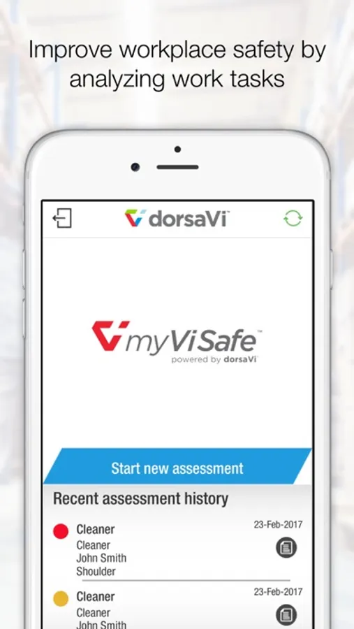 Use the dorsaVi myViSafe app to collect movement data from the myViSafe mini sensors. The myViSafe app sends and receives data from the cloud-based myViSafe database. myViSafe is intended to be used in the workplace to help improve workplace safety. myViSafe is capable of assessing low back and shoulder movement.