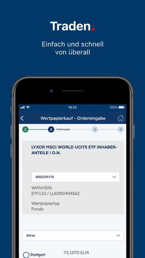 Wertpapierhandel leicht gemacht: Die Banking-App ermöglicht Ihnen jederzeit digitalen Zugriff auf Ihr Depot – Wertpapier-Handel und Kursabfrage von jedem beliebigen Ort aus.