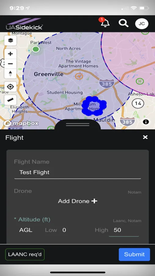UASidekick is a subscription based airspace awareness tool that ensures safety in the NAS for both manned and unmanned pilots alike. The app allows remote pilots to easily file flight plans that integrate seamlessly with FAA Flight Service and the FAA LAANC system.