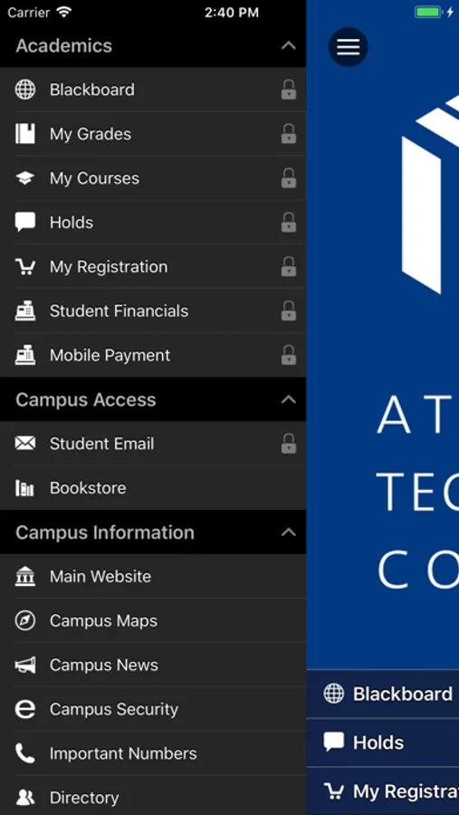 fingertips. Now your financials, grades, courses, schedule, and other personal information is just a touch away. The convenience of the MyATC Mobile app goes beyond the Self-Service aspects of Banner. With MyATC Mobile you can access events, calendars, contact, maps, and more!