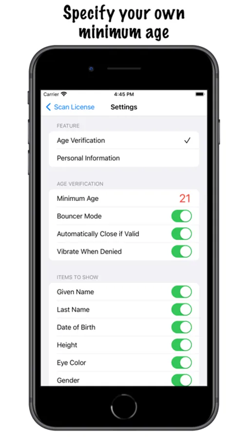 - Optional vibration for underage cardholders