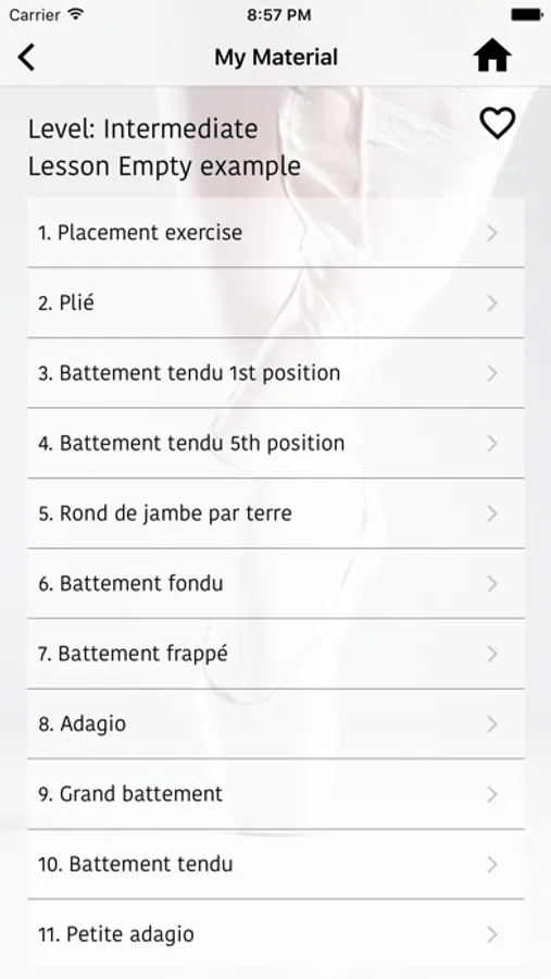 Each lesson consists of exercises for a whole lesson, 9-10 bar exercises and 9-12 floor and diagonal exercises.