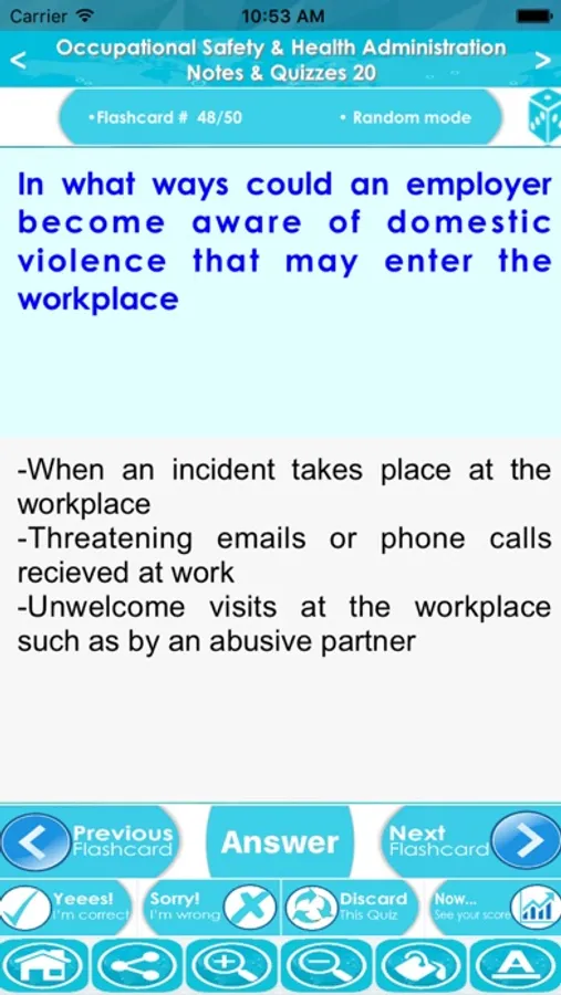 This app is a combination of sets, containing practice questions, study cards, terms & concepts for self learning & exam preparation on the topic of Occupational Safety & Health Administration.
