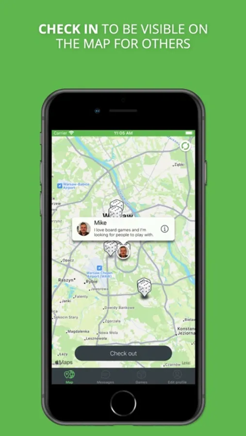 - Check in to be visible on the map for others