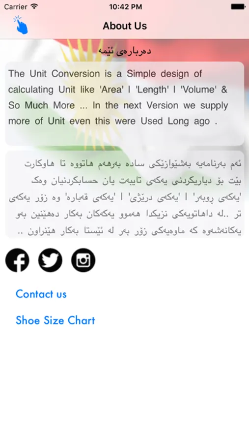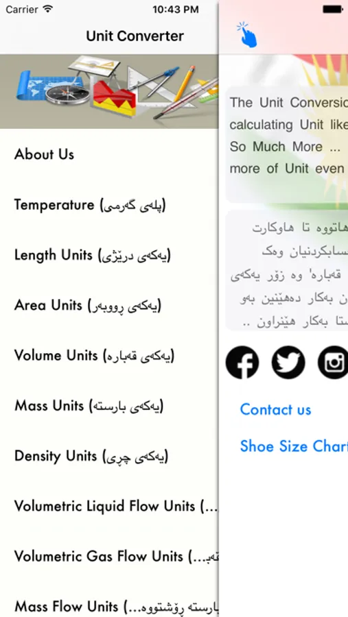 ئەم بەرنامەیە دابەزینی بەلاشە بۆ ئایفۆن وە ئایپاد وە ئایپۆد دیزاین کراوە بەشێوەیەکی سادەو ساکار لە ١٦ بەش پێک هاتووە لە ڕێگای ئەم بەرنامەیەوە زۆر بە ئاسانی ئەتونریت یەکەکان بگۆڕدرێت بۆ ئەو یەکانەی کە ئیوە پێویستان دەبێت