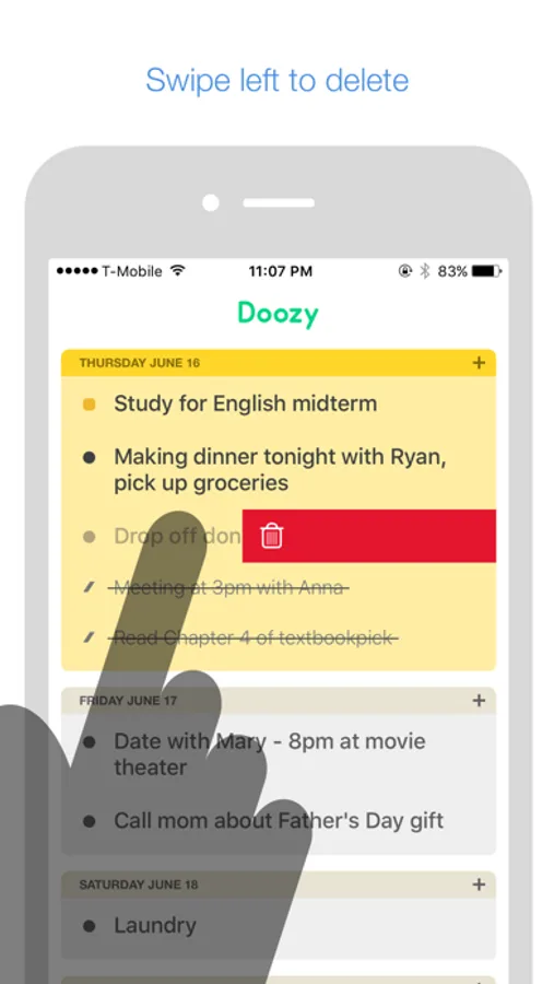 Don’t want a task anymore? Easy! Delete it with a quick swipe, and your list is clean again.