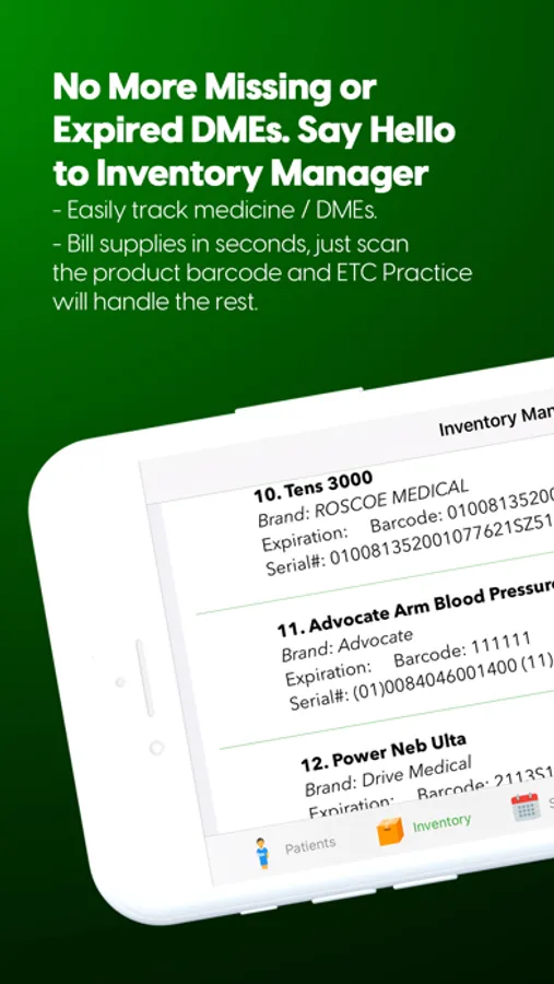 - Full Inventory Management: Track your medical supplies with ease. Use your iOS device or a bluetooth scanner to scan products and track costs of soon-to-expire items. Instantly bill for medical supplies with a simple scan. Create Delivery/Pickup/Exchange tickets in mere seconds that patients can sign with just their finger.