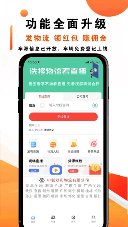 物流大全客户端是由临沂嘉盛信息技术有限公司为客户定制的移动客户端,为了让更多的客户受益特推出此app,让发货方更简单·更方便的查询所需查找的物流专线和发布自己所发出的货源信息。物流方可在此app查询更多的货源信息,获得双赢的局面。以及更多的实用功能,欢迎下载使用。