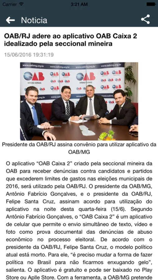 Aplicativo desenvolvido pela Ordem dos Advogados de Minas Gerais para facilitar a troca de informações entre seus inscritos