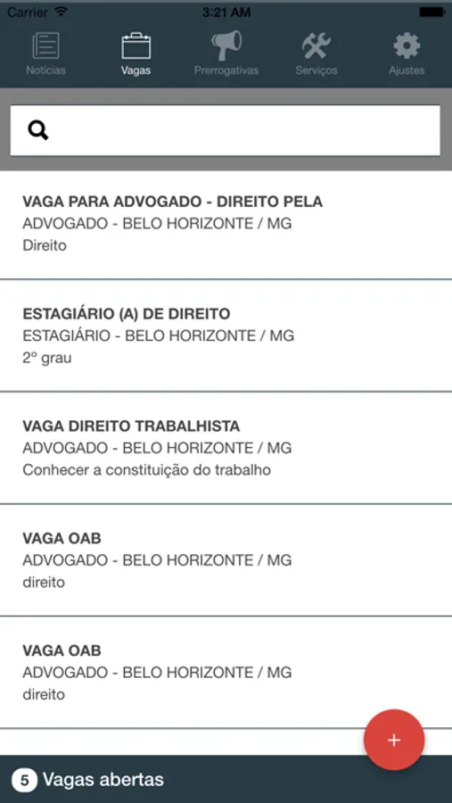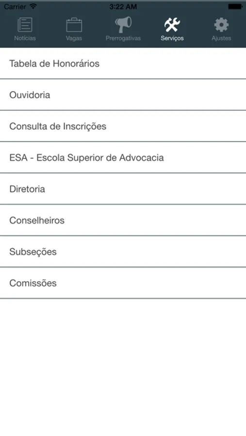 e a entidade, vídeos institucionais, palestras, notícias da OAB, e a busca da inserção do profissional no mercado de trabalho