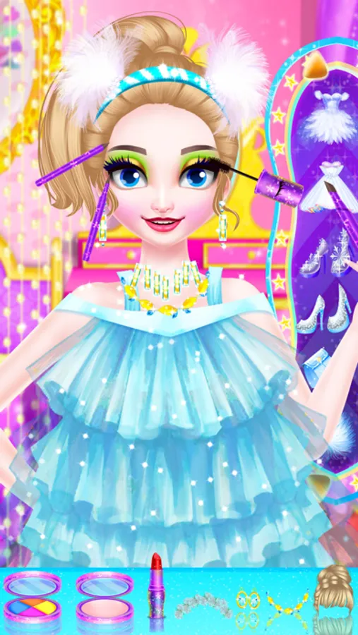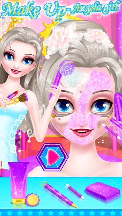 Angela girl is very happy today because she will attend a nice party tonight. Come to help her make up and be he fashion assistant. Firstly, you can use the facial cleanser to wash the girl’s face. After drying her face with towel, you can use the eyes creams to help her get rid of black eyes. Then use the tool to clear away the red pimples on her face one by one carefully. Next step, you can use the concealer stick to conceal those acne masks. Then you can use the lipsticks to decorate her lips. At last, come to help her make facial and eyes masks. Use the sponge with water to clean the masks and put some facial creams on her face. The second stage of the game, you can come to make up for Angela. Use our given cosmetics to make her as beautiful as you can. Choose the suitable eye brow colors and eye shadows for her and decorate her face with foundation creams and blusher. The third stage, you can try your best to dress up Angela with beautiful dresses and decorate her beauty with those shining accessories and show us.
