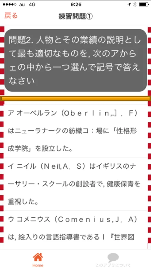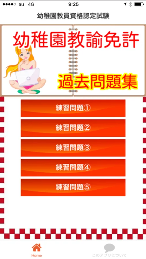 このアプリは、「幼稚園教諭免許(ようちえんきょうろん)」の取得を題材とした非公式の無料学習アプリです。今回題材としているのは幼稚園教諭2種免許になります。保育士資格と並んで人気があるのが、幼稚園教諭資格。幼稚園教諭は、幼稚園(私立・効率)で3歳児から小学校就学前までの子供たちの指導・保育を行います。幼稚園は、「学校教育法」という法律に基づいた学校なので、幼稚園教諭免許状が必要なのです。