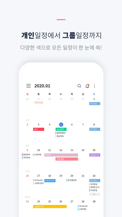 • 일정, To-do(할일), 기념일(음력지원)을 간편하게 관리(구글, 아웃룩 연동지원)