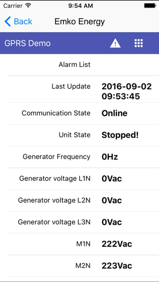 - You can view the values of generator devices that you are authorized, and you can connect to the device remotely through the start-stop-auto-man-test-reset modes.