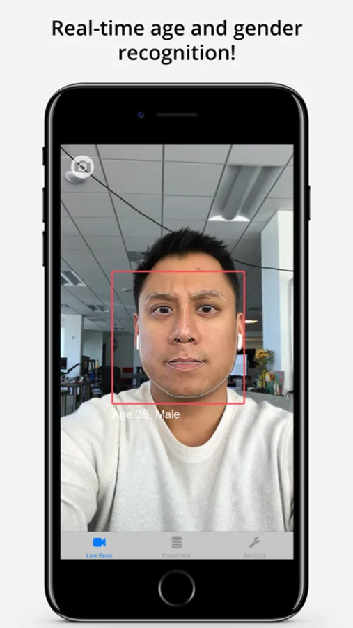 The Sighthound Recognize application allows you to use your iPhone's camera to detect and recognize you in real time. Using either the front or back camera, Sighthound Recognize will use our detection, and recognition software to to find and recognize faces. On iPhone 6s and newer devices Sighthound Recognize also will recognize your age and gender.