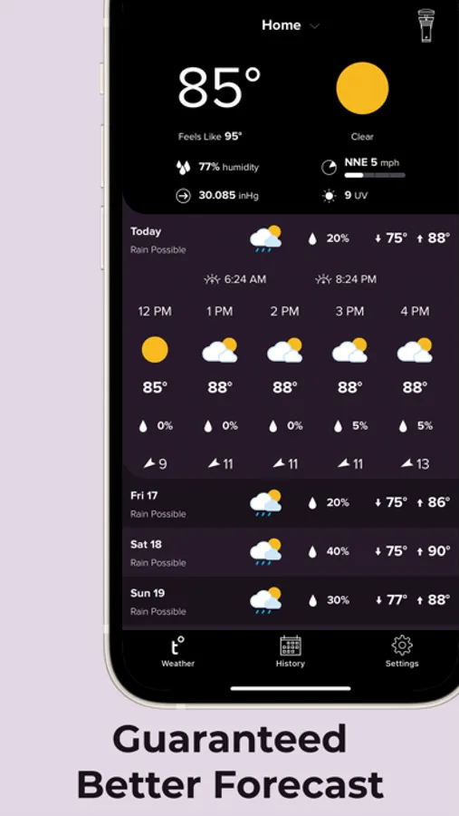 Use this app to save time, energy, and water by integrating with popular smart home and irrigation services. Use your weather data to optimize heating and cooling, adjust your irrigation schedule, and alert your family when lightning storms approach. Tempest is compatible with Google Assistant, Rachio, IFTTT, Siri, Alexa, Homey, and many more.