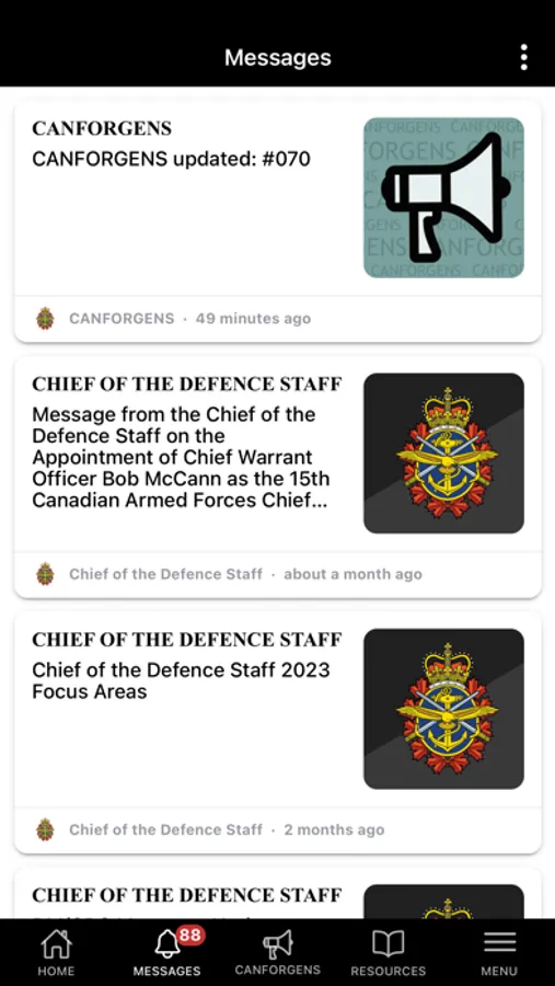 The Canadian Armed Forces app keeps military and civilian employees up to date with the latest news, CANFORGENS, orders and directives.