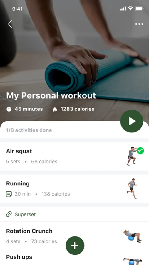 Sie können diese App mit der Apple Health App synchronisieren. Wenn Sie diese Übertragung aktivieren, wird jedes Training aus der Health App automatisch zu Ihrem Aktivitätskalender hinzugefügt.