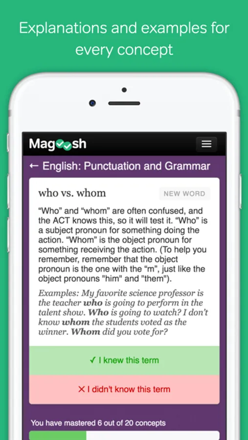 Research also shows that spaced repetition, or seeing the same concept repeated many times while you prep is the best way to practice recalling information quickly. This Praxis practice app uses an algorithm based on the Spaced Repetition Technique. The Spaced Repetition Technique comes from academic research, which shows that memories are formed by repeated exposure to new information at different intervals. When you practice with this Praxis prep App, you’ll notice that concepts are tagged as "mastered", "reviewing" or "learning". Concepts that you are "learning" will appear most frequently, until you master them, and then they will appear less frequently so that you can continue to review them.