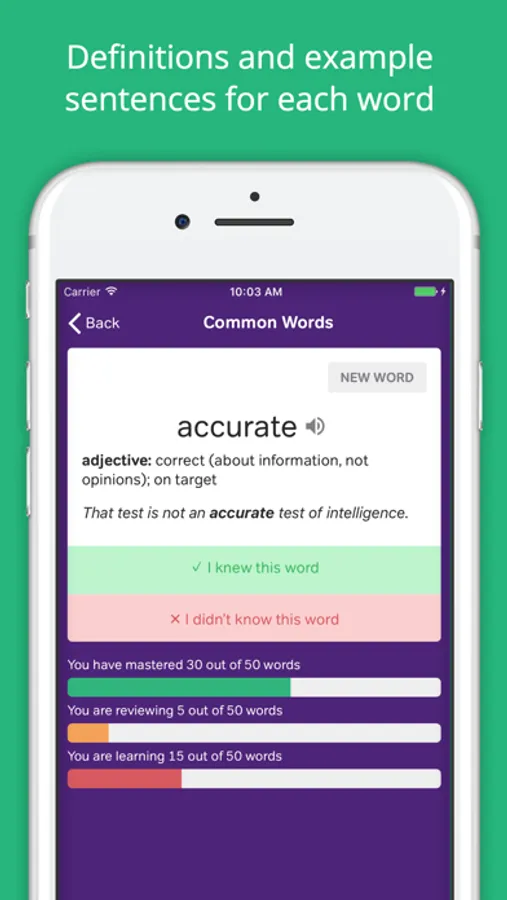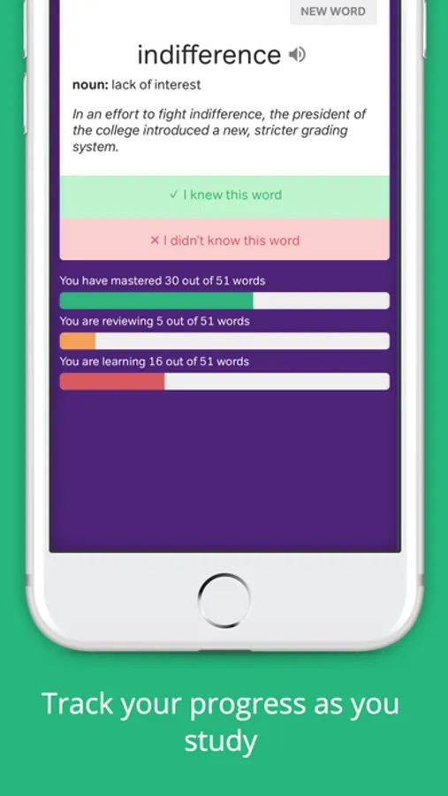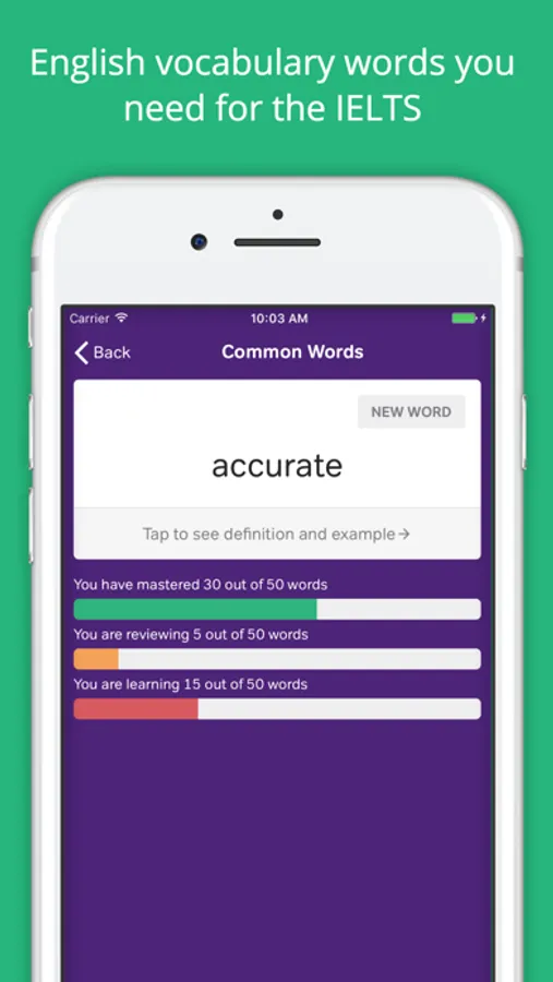 Words and definitions you’re learning will reappear on flashcards to help you learn them faster, appearing less and less frequently as you know them better. Our IELTS flashcards contain the 600 most important words you should learn to ace the IELTS exam, making sure you don’t waste your time learning unimportant vocabulary.