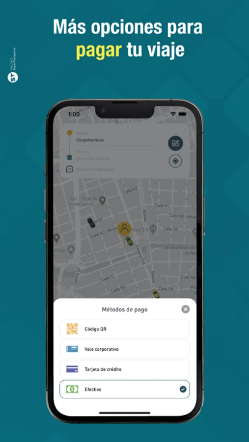 • Ve como Coopebombas asigna el taxi más cercano. Sigue tu conductor en el mapa y en minutos estará en la dirección que solicitaste.
