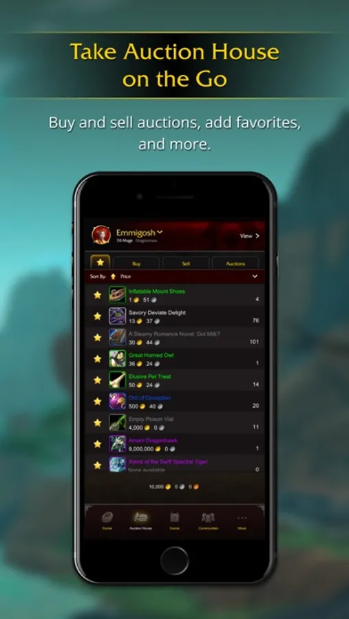 MANAGE YOUR AUCTIONS: Buy and sell auctions, add favorites, and manage listed auctions from the Auction House.