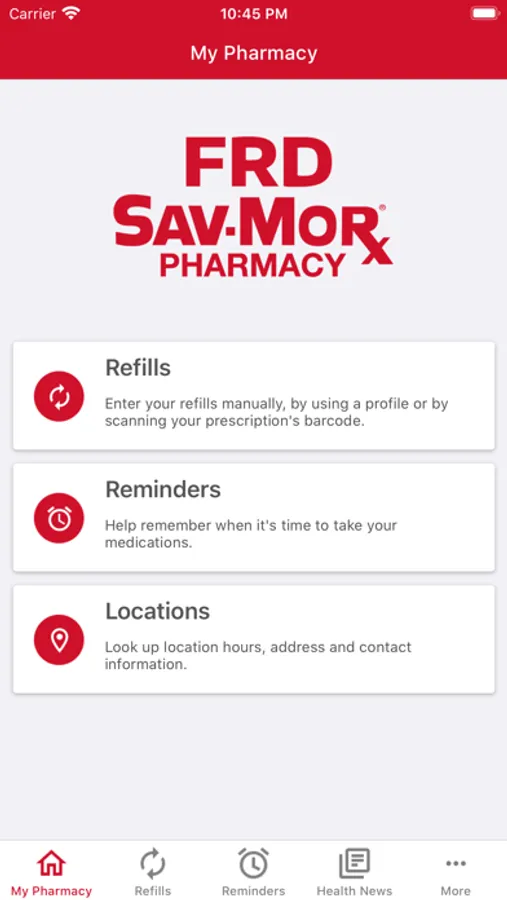 The FRD Pharmacy Sav-Mor app allows you and your family to securely communicate with your local pharmacy. Refill your prescriptions with one click, get refill reminders, get discounts at your local pharmacy, get savings on brand drugs and access Pharmacist written pages that help you understand your condition or medications.