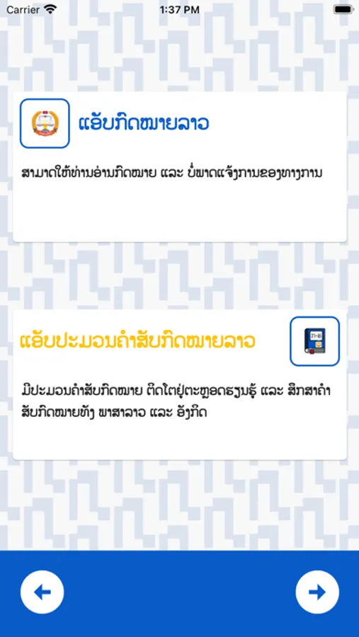 LaoLaw is a mobile application that will provide you all the updated law documents. You will also be able to see all the announcements from the official authorities. This is the first and only application that you will be able to receive a notification about the notices and announcements from the Ministry of Justice Of Lao PDR.