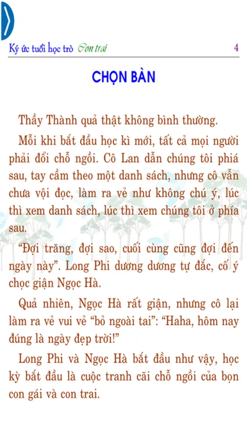 Ký ức tuổi học trò với cách hồi tưởng về những kỷ niệm thời còn ngồi ở ghế nhà trường với giọng văn kể truyện kể về những kỷ niệm đẹp của thời học trò...