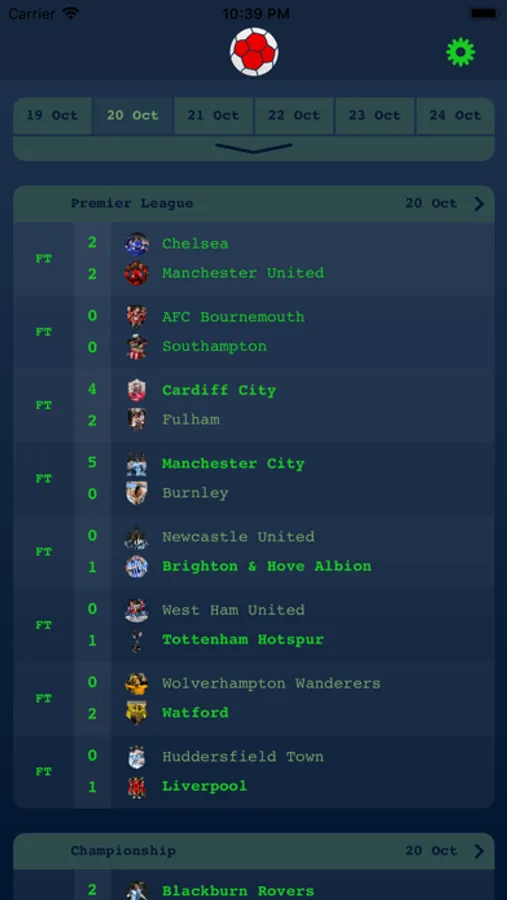 Follow live scores of the English Premier League and the Championship with the best app of ever, matches live, events, comments (in English), lineup, statistics and much more.