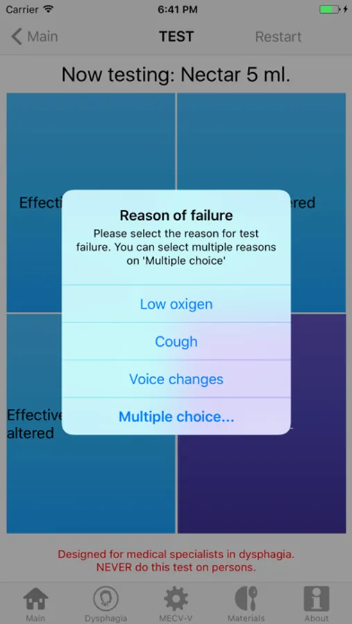 DysScreen is an app designed to educate and assist to the medical specialist that want to perform a dysphagia test based on the V-VST clinical test.