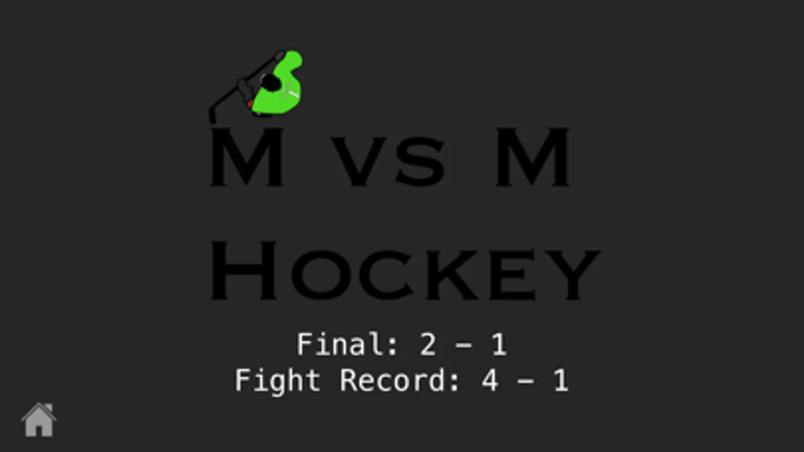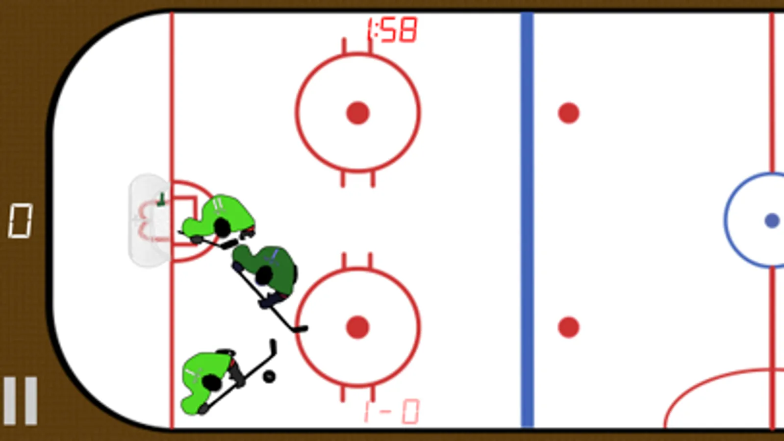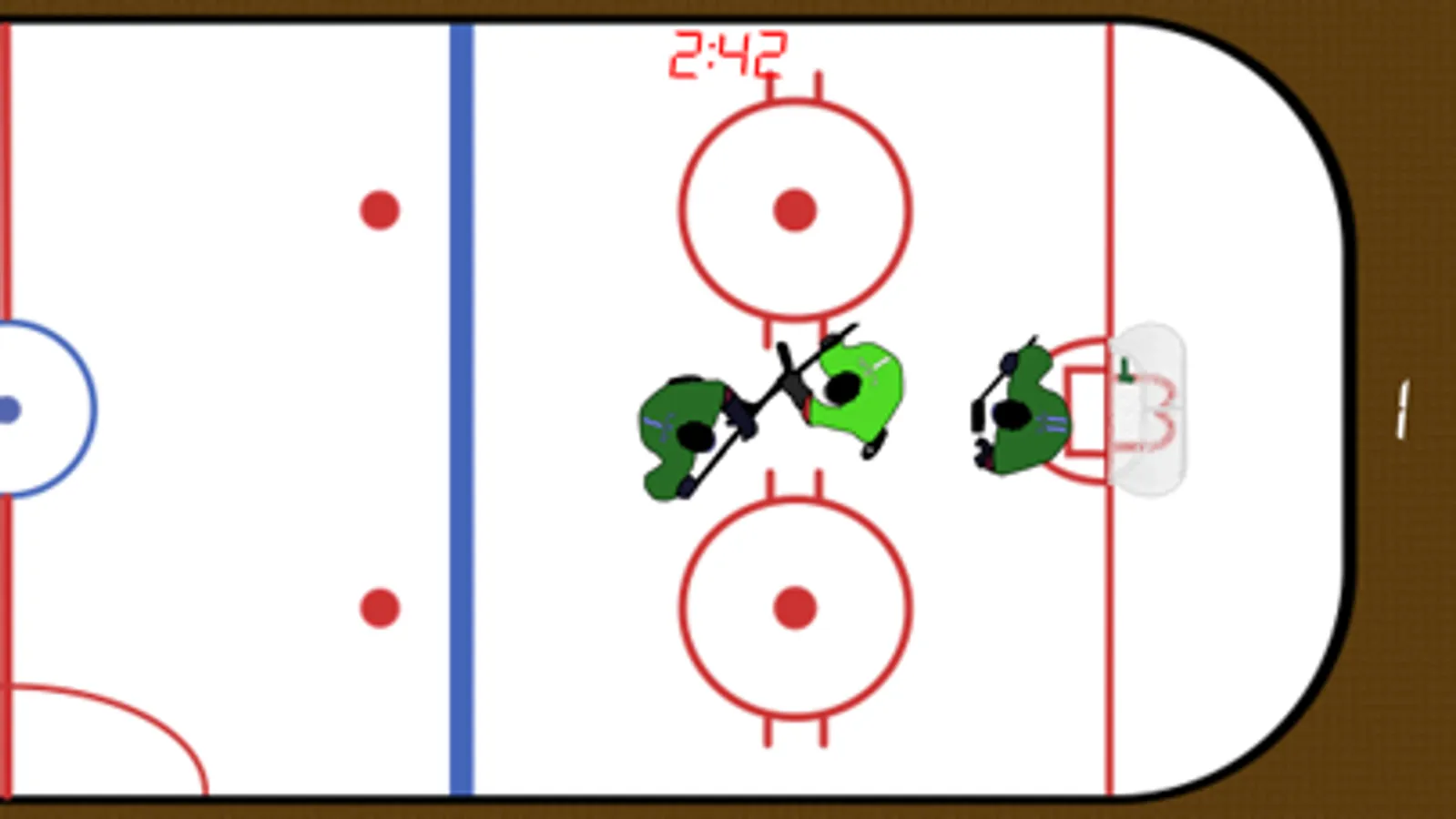 Two nets, two goalies, and three minutes of intense one-on-one hockey action. Face off against a single opponent who cares about one thing: making sure that you don't win. Score by sneaking a wrist shot between the goalie's pads and the post or by blasting a slap shot right by. Give the opponent a wicked check to knock 'em down and steal the puck, or get in a full on fight and knock 'em down for longer, giving you the opportunity to make a move and score.