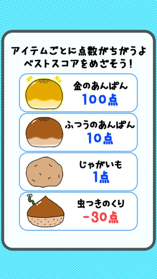 上から落ちてくるあんぱんを時間内にたくさん食べよう!