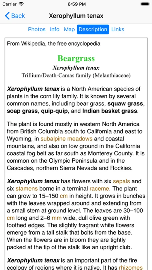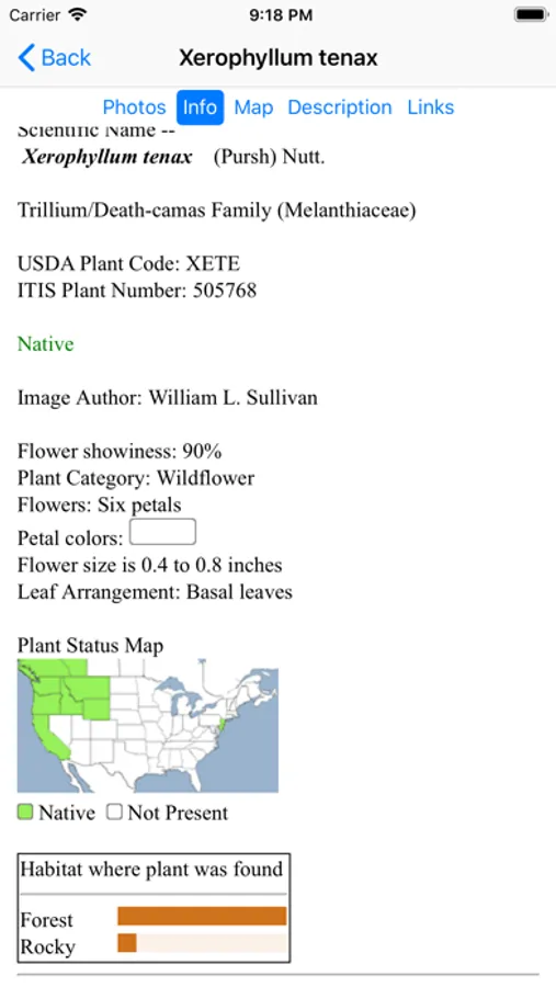 This App helps find and identify plants. When you give the App information about a plant, such as its location, flower color and the time of year, the App will quickly show you which plants match your selections.