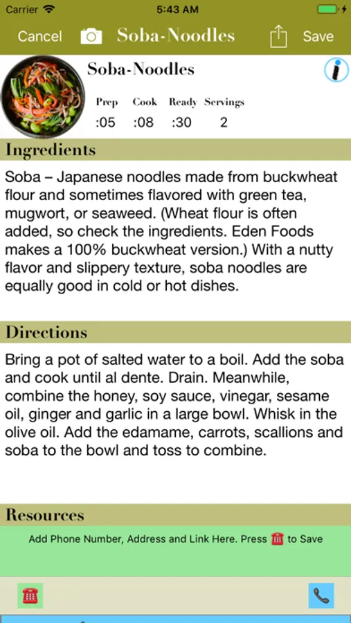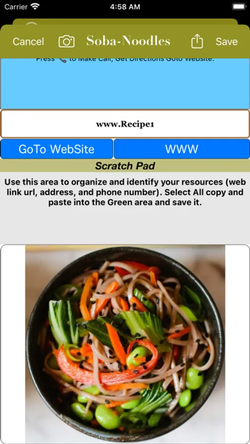 Save all your recipe information: ingredients, directions, prep time, cooking time, ready time and serving quantity with "Your Resipes!". Quickly enter information by dictation, copy/past or type-in your information. You may select your images from your library or use a snapshot from your camera. Additional pages added to store, display and zoom in on images. Save and access your links to online resources. Share your recipes with friends and family. This app makes storing all your recipes quick, easy and fun.