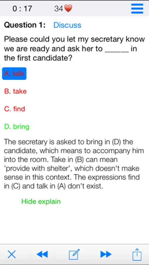 - App provides questions and answers with explanations for each question, help students understand and grasp knowledge of grammar.
