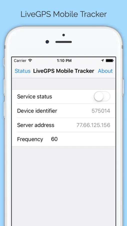 By default application is configured to use free Live GPS Mobile Tracker service (IP: 85.214.119.254, port - 6055). To see your device on map register on http://demo.traccar.org/ and add your device with identifier.