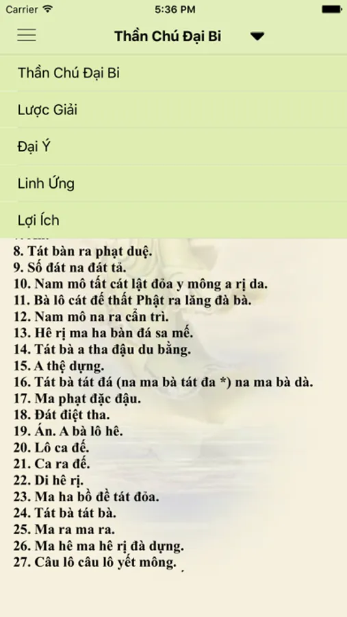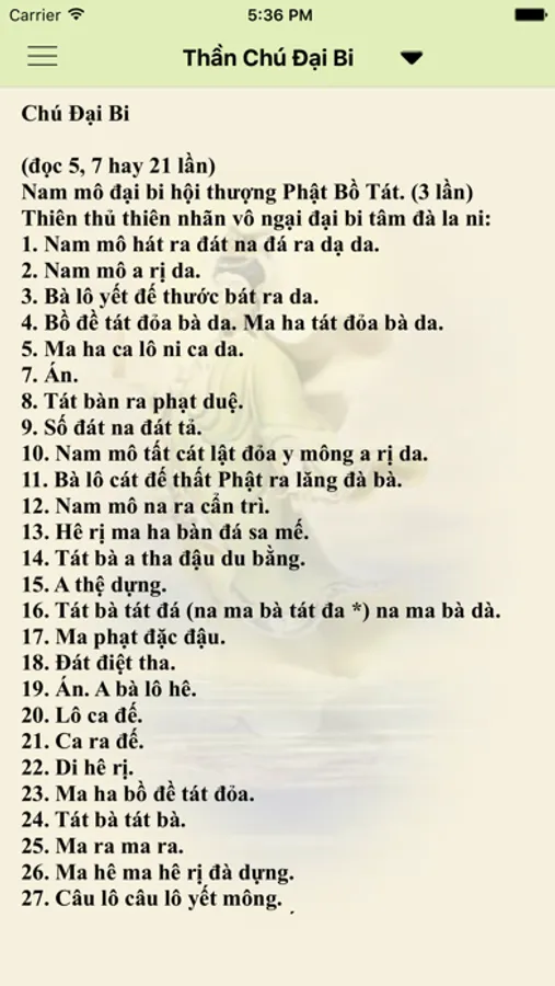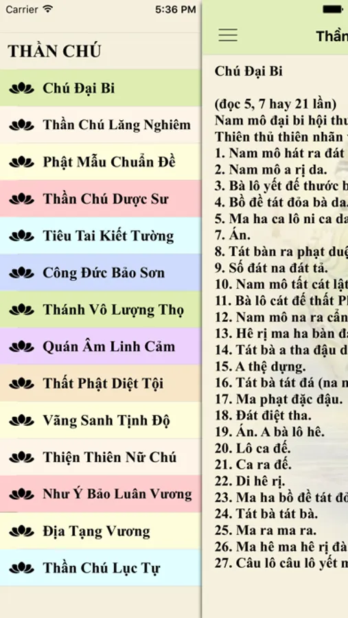 Ứng dụng tổng hợp 12 bài chú thường tụng bao gồm: