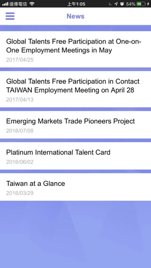 This app provides useful infomation of working, living and investing in Taiwan for global talents and investors. It offers latest news and employment matchmaking service.