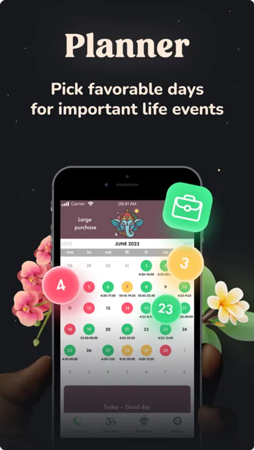 - Calculation of auspicious days for 43 categories. With taking your personal astrological factors into account.